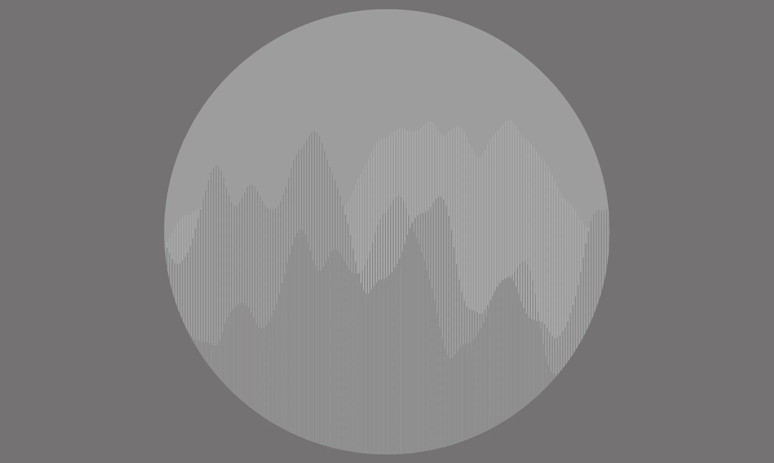 Sidereal Messenger originates from the title of a pamphlet published by Galileo in 1610 in response to the newly invented telescope, and his resulting revelations about our galaxy and reverence for the sublimity of space. As a point of departure, Arnold contemplates the unknowable in works like Dark Nebula, Moon Phase and Eclipse. His images are framed as if viewed through the lens of a telescope, waveforms going in and out of phase like colliding moiré patterns creating a visual and sonic eclipse.